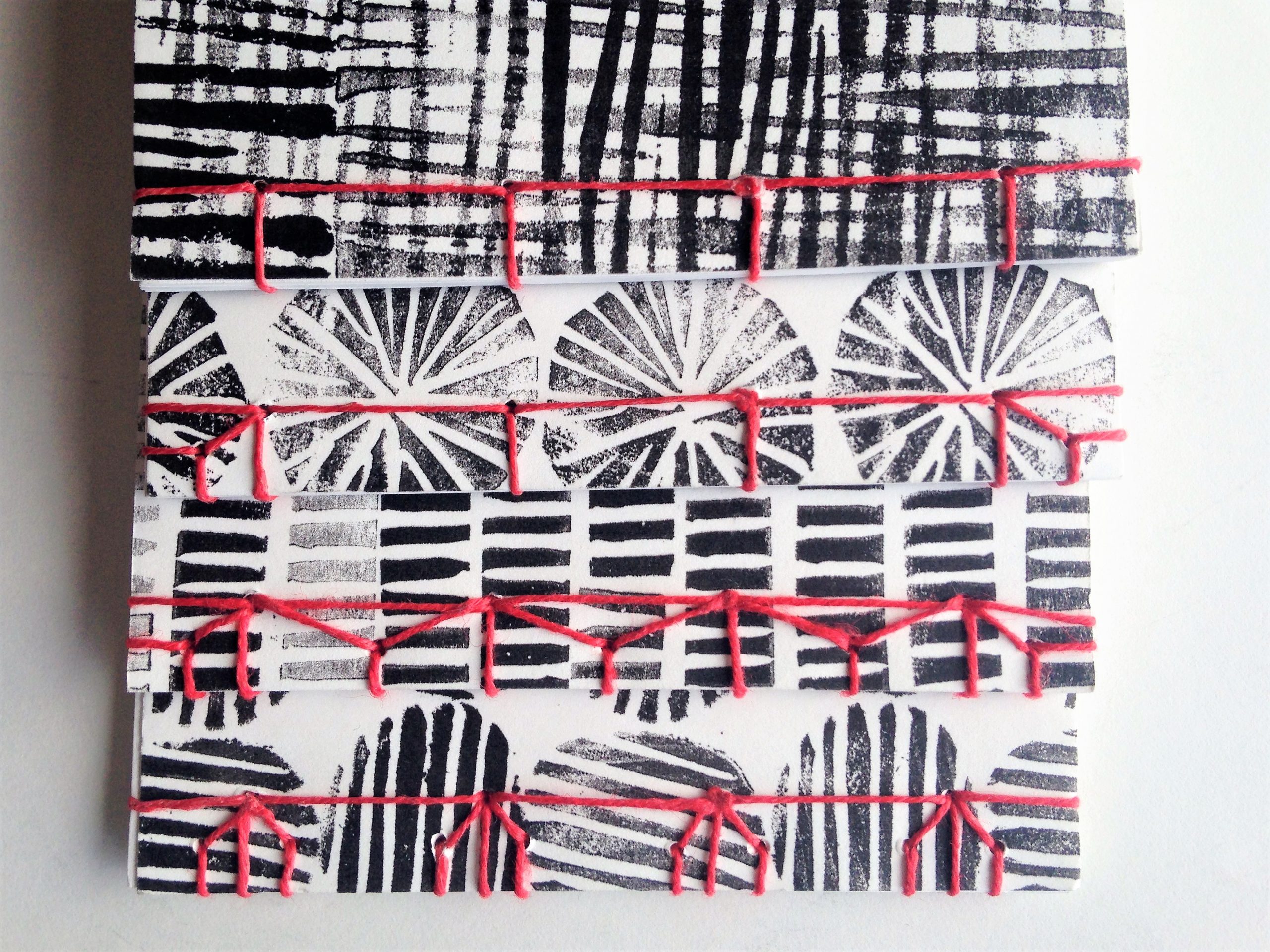 Tijdens deze workshop maak je vier schets- of notitieboekjes. Elk boekje krijgt een andere Japanse binding. De Japanse binding is een interessante en decoratieve techniek om losse vellen te binden.