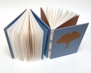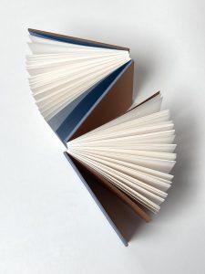 | €105Tijdens deze workshop maak je een bijzonder object: twee boekjes in één, met elkaar verbonden tot één geheel. De voor- en achterkant zijn bekleed met boekbinderslinnen. Ze staan tegenover elkaar en versterken elkaar door kleur en vorm. Je leert vormen van boekbinderslinnen in te leggen, een precies werk! De boekblokken worden genaaid met de zichtbare French linkstitch in een bijpassende kleur.